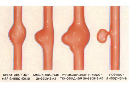 По структуре стенки выпячивания различают следующие виды аневризм: