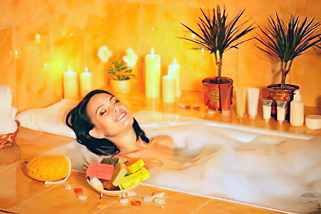- Тёплая ванна. Создайте расслабляющую атмосферу с ароматическими свечами и приятной музыкой. Этот ритуал можно выполнять каждый день без вреда.